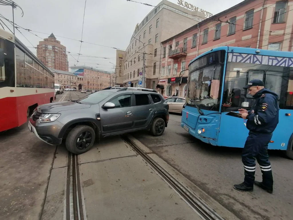 Свидетели происшествия в соцсетях уточняют, что столкновение случилось на трамвайных путях.