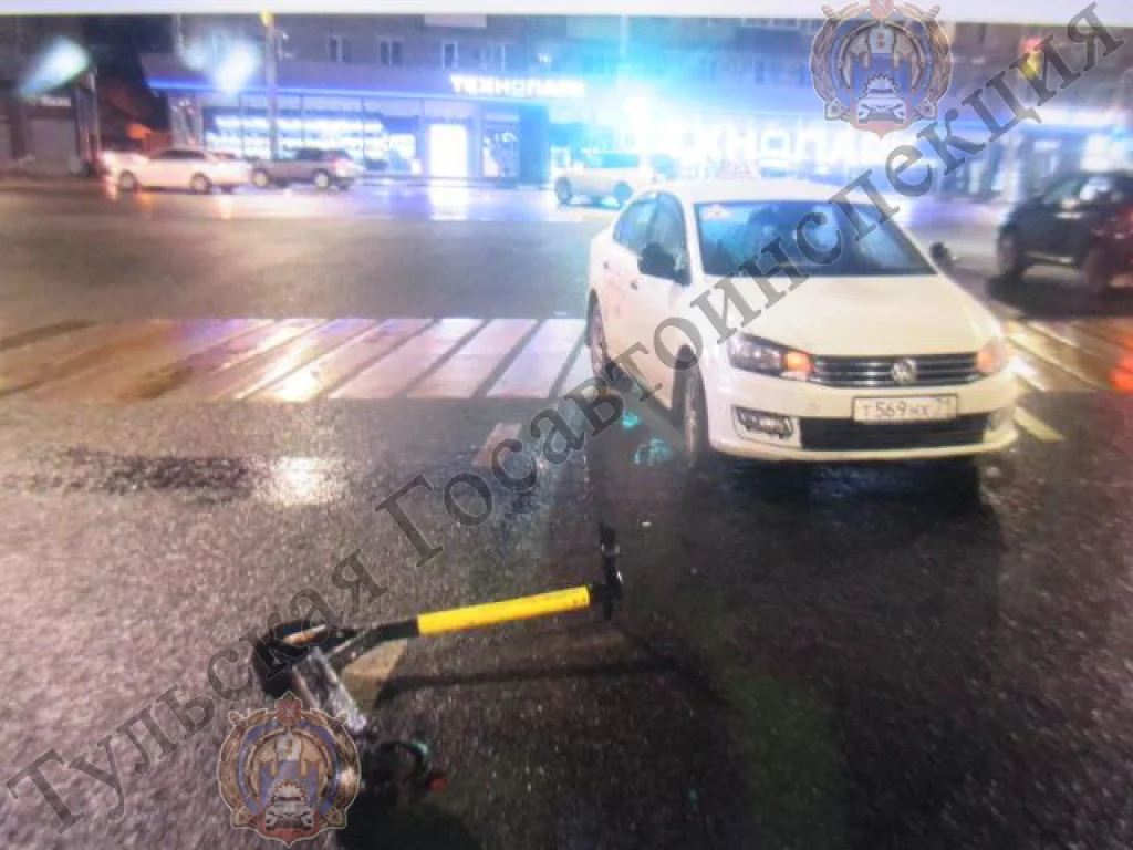 В центре Тулы иномарка наехала на парня с электросамокатом