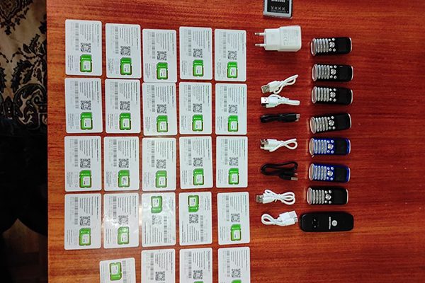 Из двух железных банок вытащили 24 сим-карты популярных мобильных операторов, 7 мобильных телефонов, 2 зарядных устройства, 7 USB-шнуров и мобильный модем.