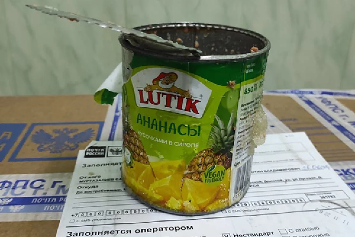 Посылку с запрещенным содержимым обнаружили сотрудники колонии. При досмотре выяснилось, что в железных банках вместо консервированных ананасов – телефоны и комплектующие к ним.