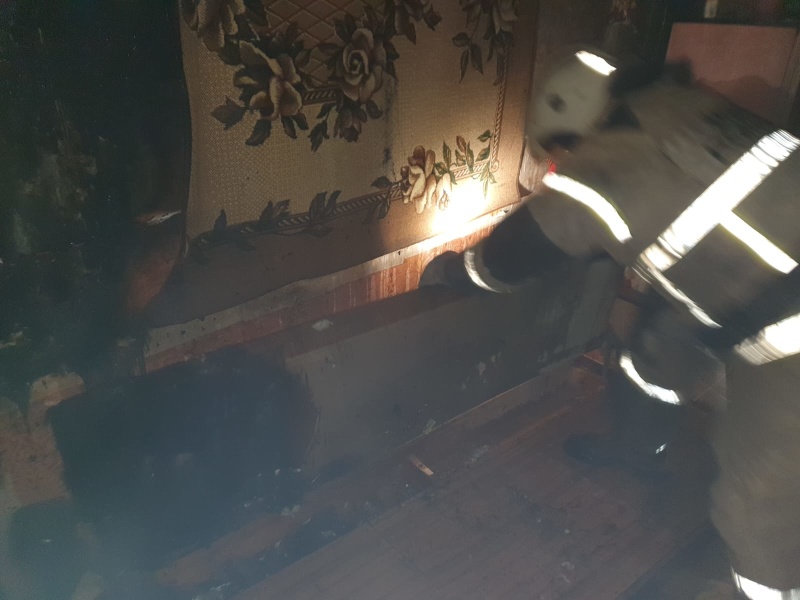 В результате происшествия в комнате сгорела постель. Причина пожара выясняется.