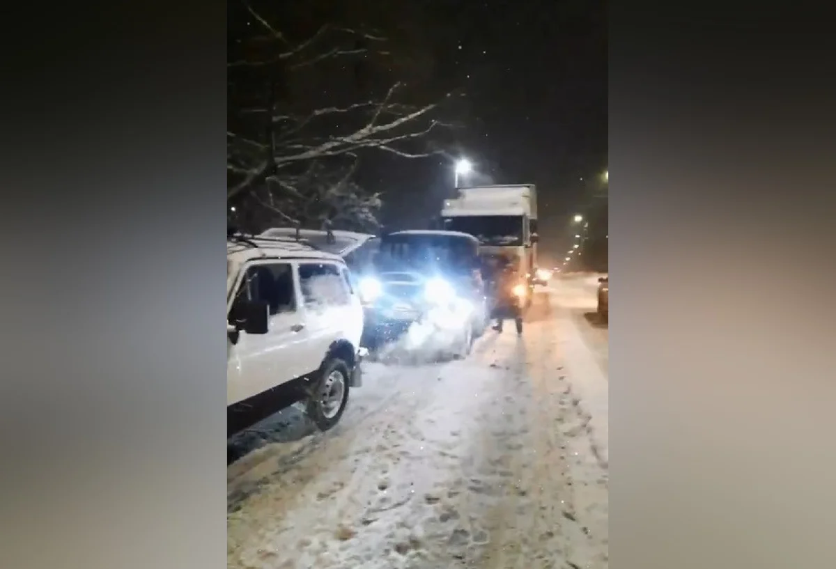 Туляки не остались в стороне и помогли тяжелому грузовику выбраться из снега.