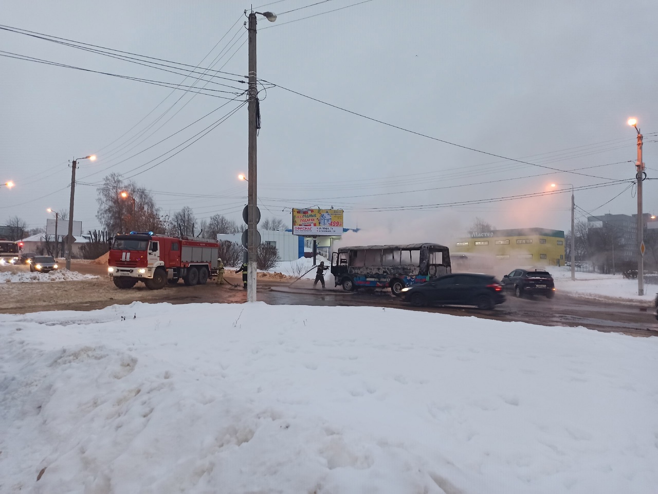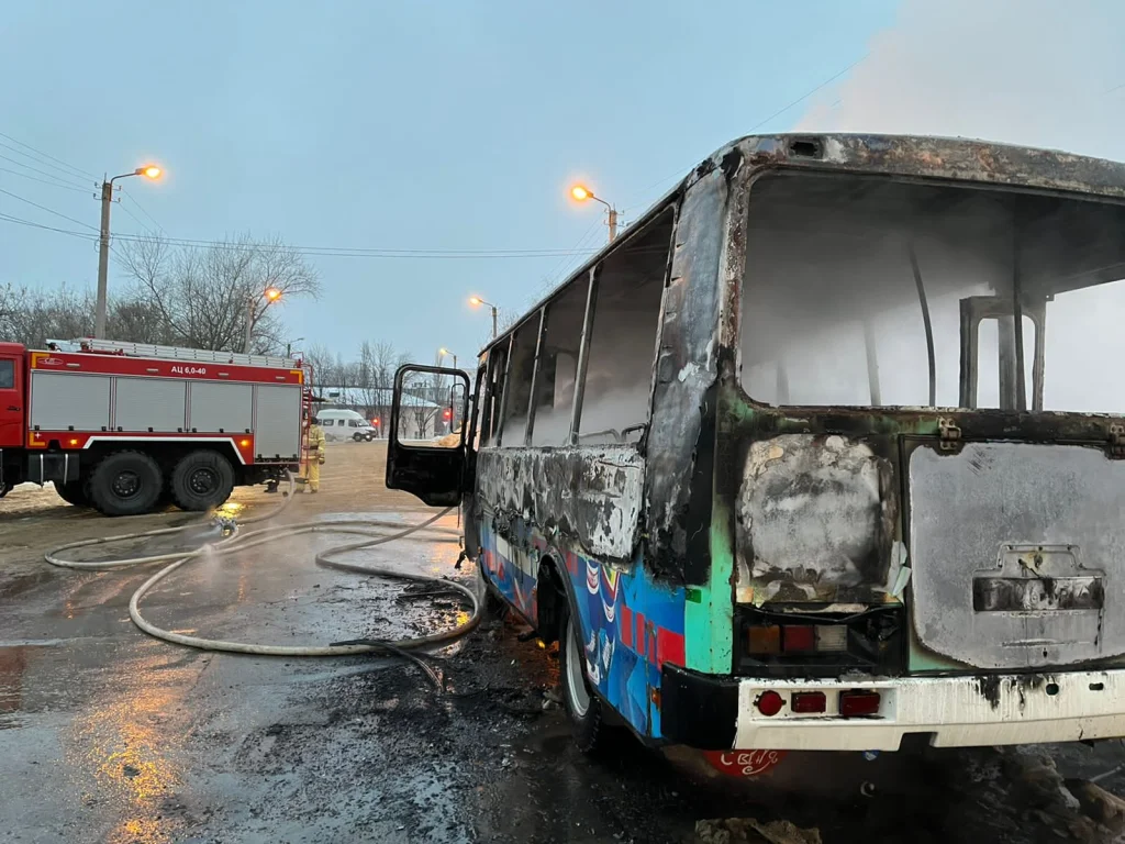 Происшествие попало на фото очевидцев, которые поделились этим в социальных сетях. Автобус «ПАЗ» выгорел полностью.