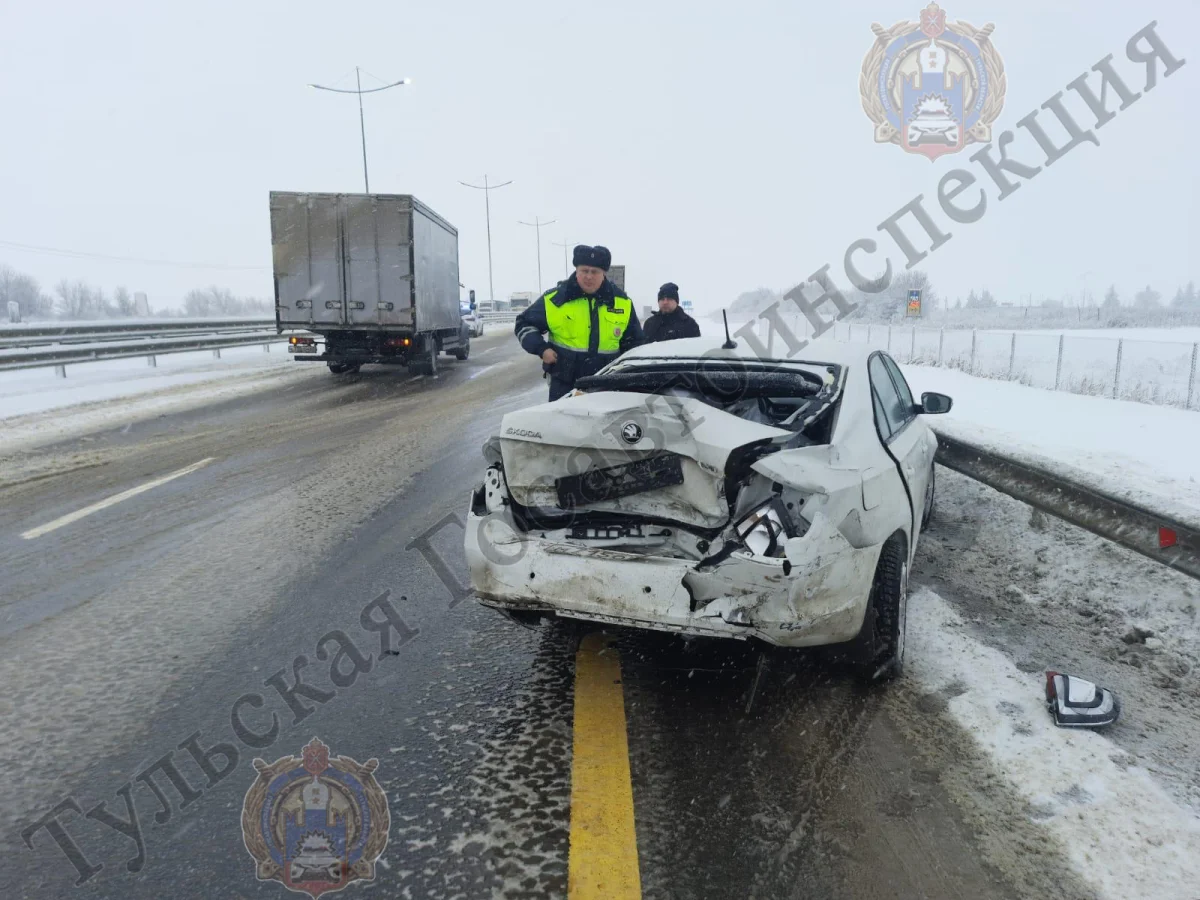В Воловском районе Skoda Rapid вынесло в отбойник, а потом в грузовик. Авария случилась утром 28 декабря.
