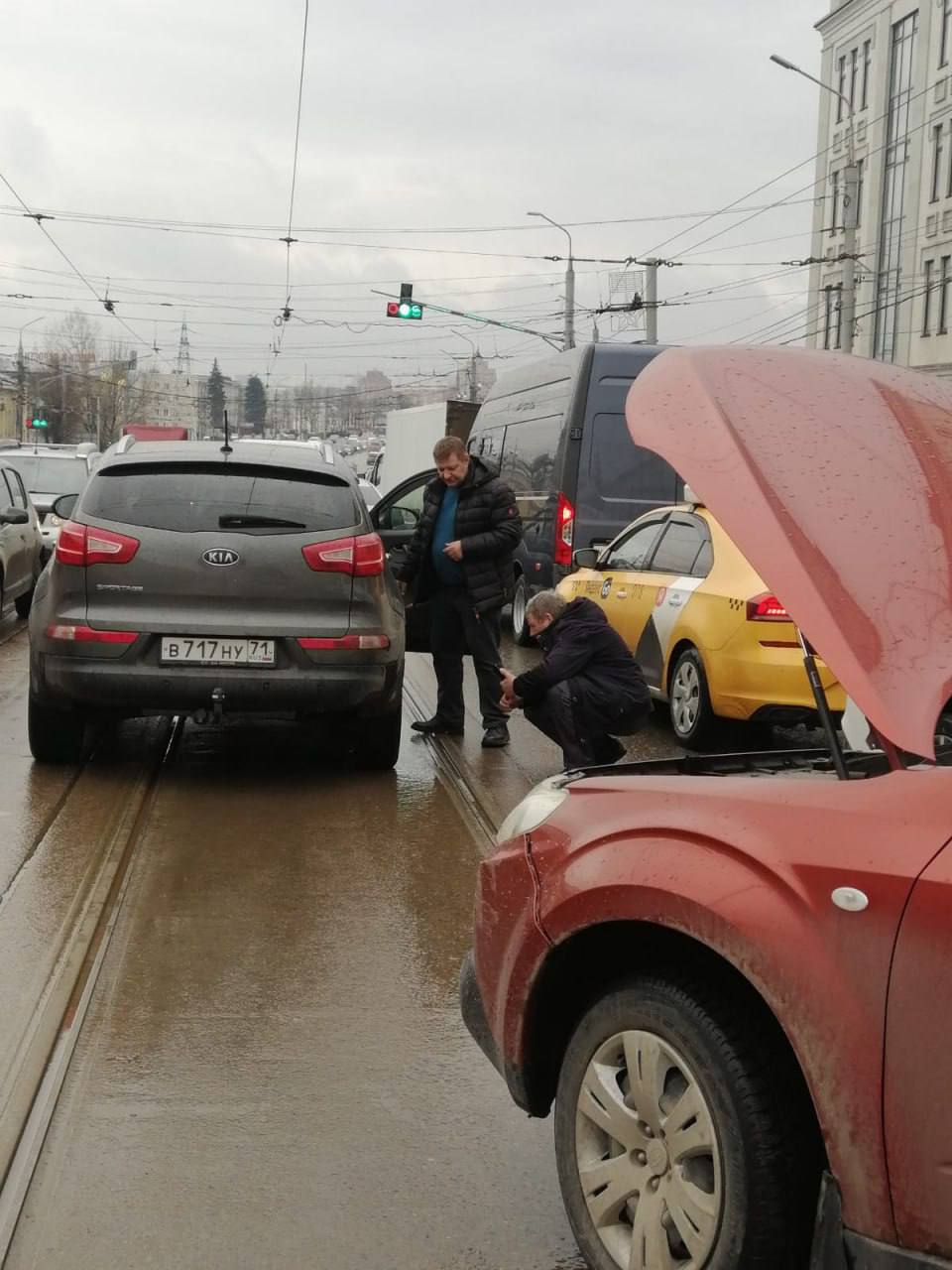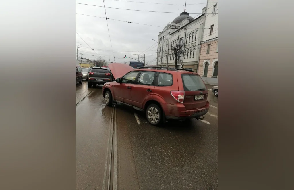 В Туле столкновение Subaru и Kia перекрыло трамвайное движение