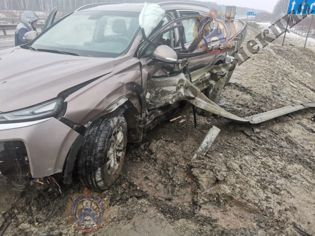 По данным ГИБДД, около 10:05 на 153 километре М-4 «Дон» 51-летний мужчина, предположительно, не справился с управлением Hyundai Santa Fe, от чего машина на полном ходу врезалась в металлический отбойник.