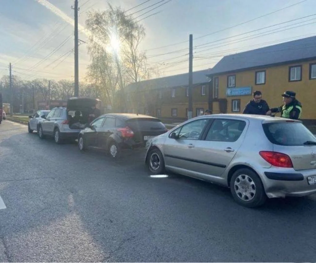 В Туле на Щегловской засеке в попутном направлении столкнулись четыре легковые машины. Об этом сообщили очевидцы в телеграм-канале Compas_71