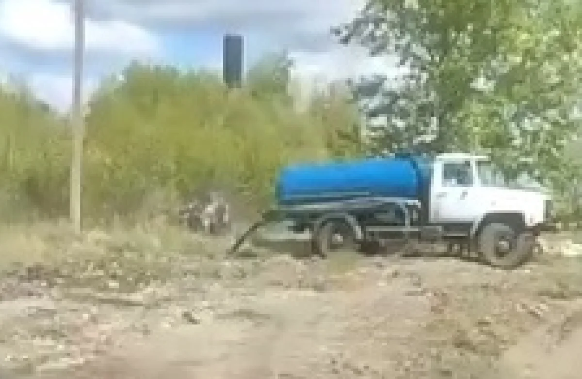 Водитель ассенизаторской машины попытался выдать отходы за воду. По словам автора ролика, он также предложил ему 500 рублей за молчание.