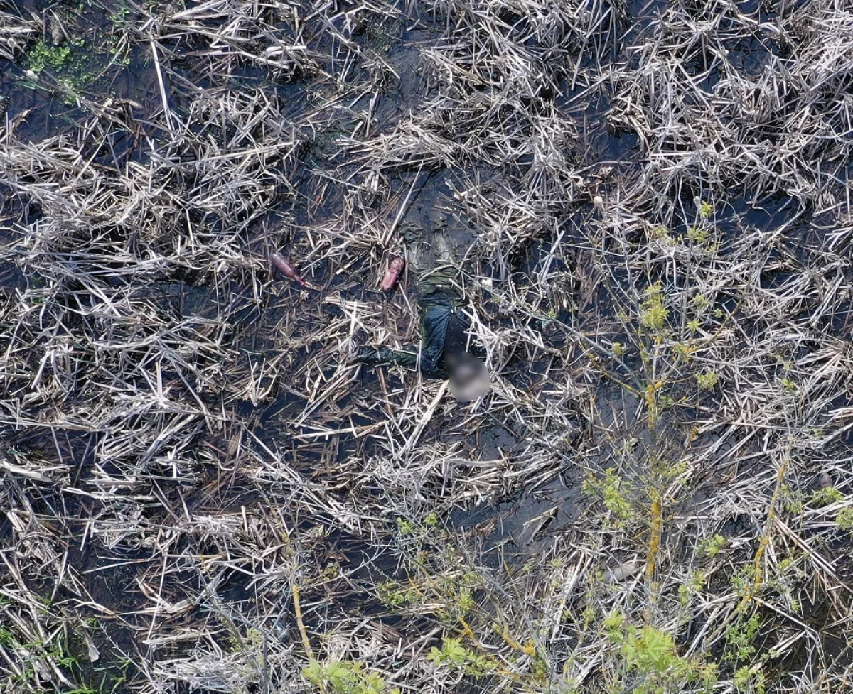 Через три дня, 7 мая они нашли в болотистой местности тело, подходящее под описание. Сейчас труп достали на поверхность.