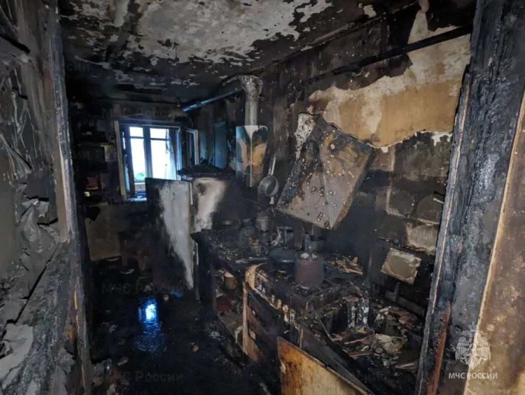 В результате в квартире сгорели кухня и коридор. Причина возгорания выясняется.