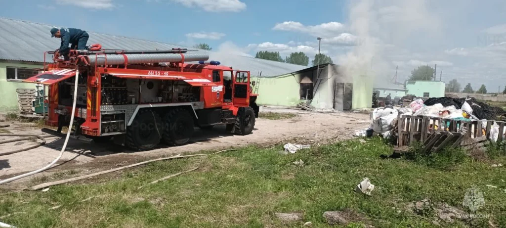 Диспетчеры получили сообщение о возгорании в 11:33. Горел ангар 100 на 30 метров, в котором хранились резиновые заготовки для обуви.