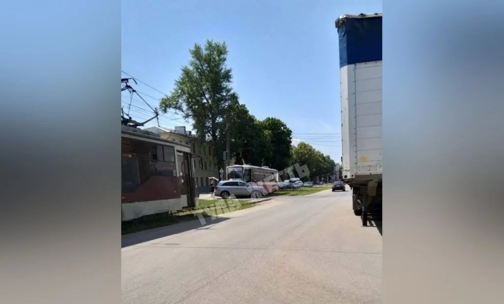 В Туле из-за ДТП кроссовера с трамваем образовалась пробка