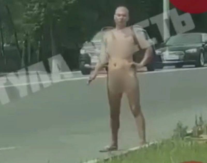 В тульском Заречье у заправки днем 5 июля разгуливала голая женщина.