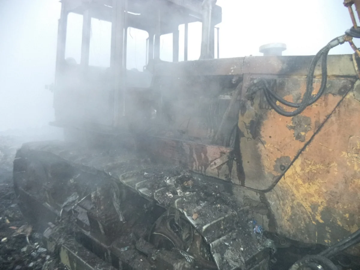 . Сообщение о возгорание диспетчер «Единой службы спасения - 112» получил в 07:42. Звонивший сообщил, что горит бульдозер "Б-10".
