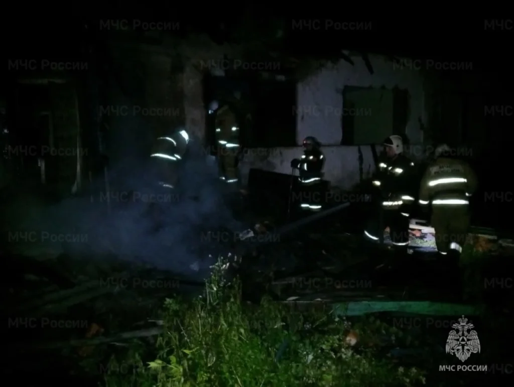 Вызов спасателям поступил около 00:25. По сообщению, горел дом в Липках на углу улиц Октябрьская и Ленина.