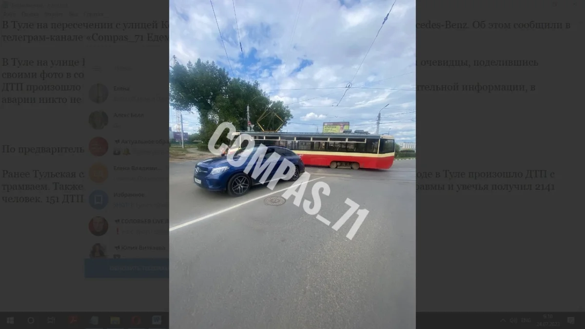 В Туле на улице Коминтерна трамвай столкнулся с Mercedez-Benz. Об этом сообщили очевидцы, поделившись своими фото