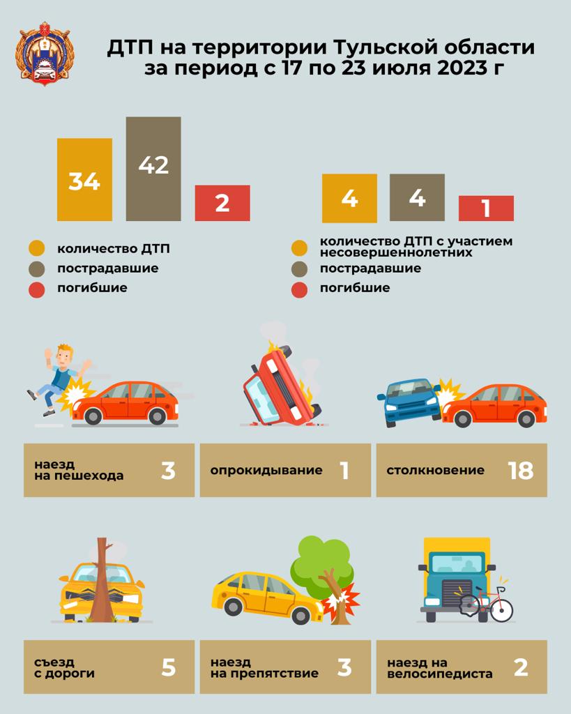 За неделю в Тульской области произошло 34 ДТП. Об этом сообщает региональная Госавтоинспекция.