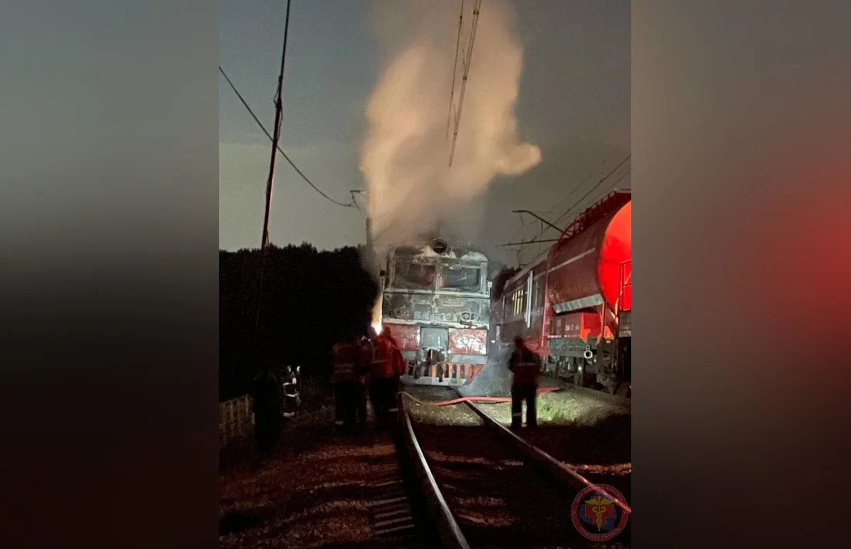 Состав загорелся ночью. Причиной стало короткое замыкание в кабине.