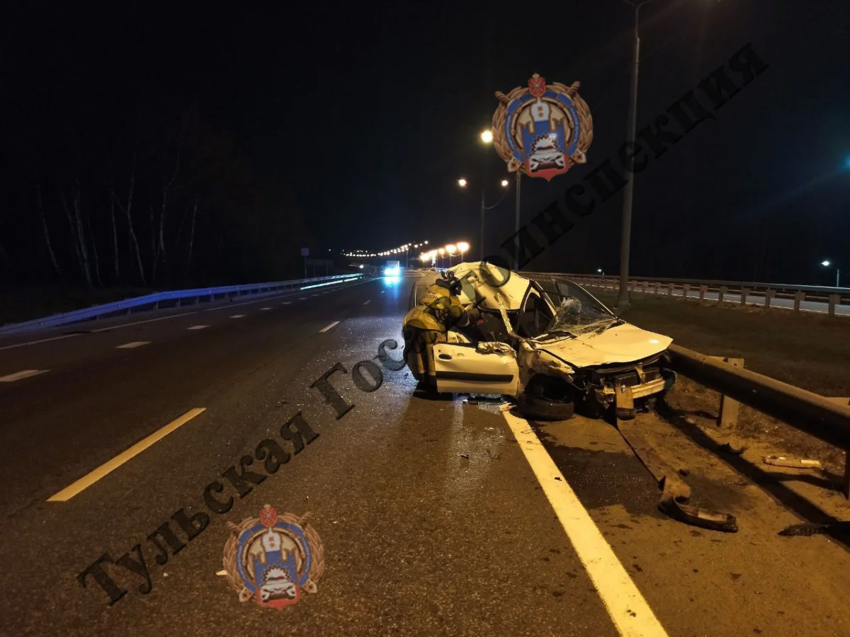 В Заокском районе Lada врезалась в грузовик и ограждение. Авария произошла в ночь на 4 октября.