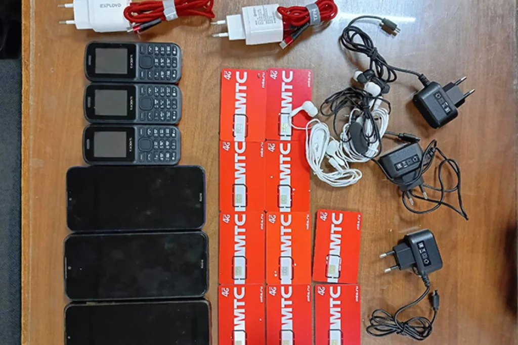 Внутри пакетов нашли 5 мобильных телефонов, 11 сим-карт различных операторов сотовой связи, 5 зарядных устройств и 3 пары наушников.