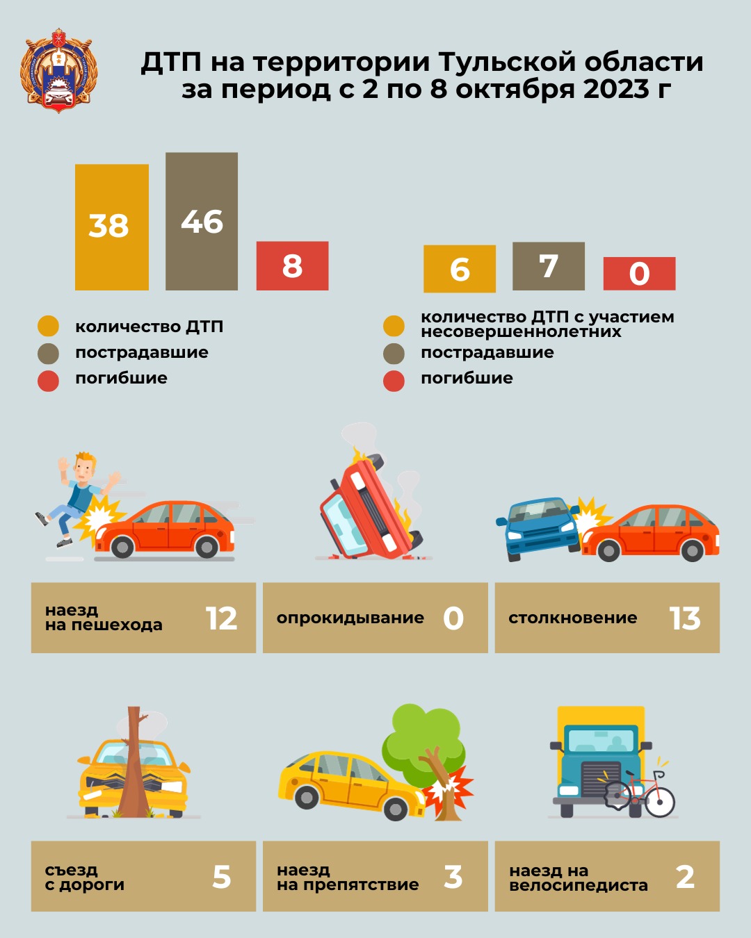 За прошедшую неделю в Тульской области произошло 38 дорожно-транспортных происшествий. Об этом сообщает ГИБДД по региону.