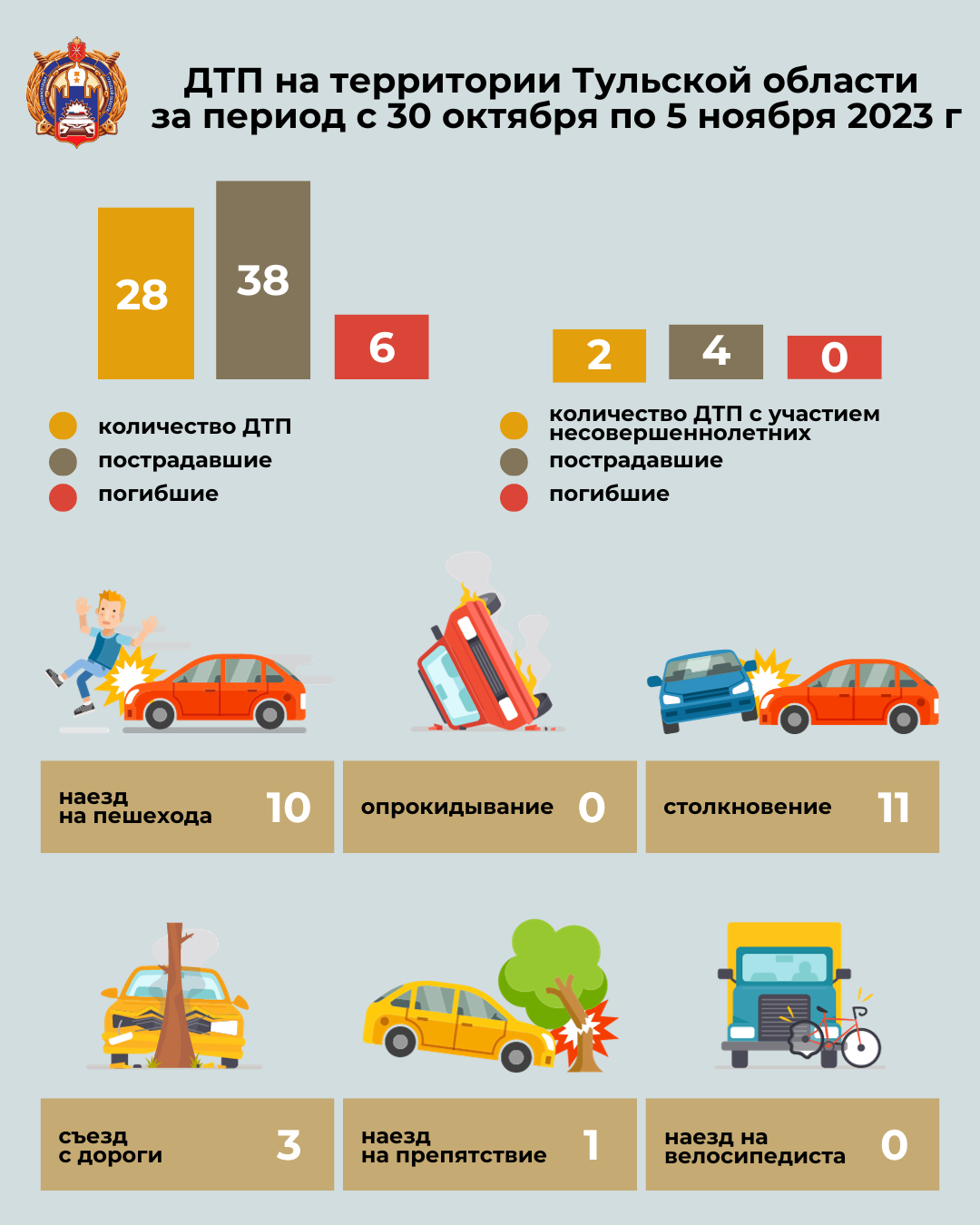 За прошедшую неделю в Тульской области произошло 28 дорожно-транспортных происшествий. Об этом сообщает ГИБДД по региону.