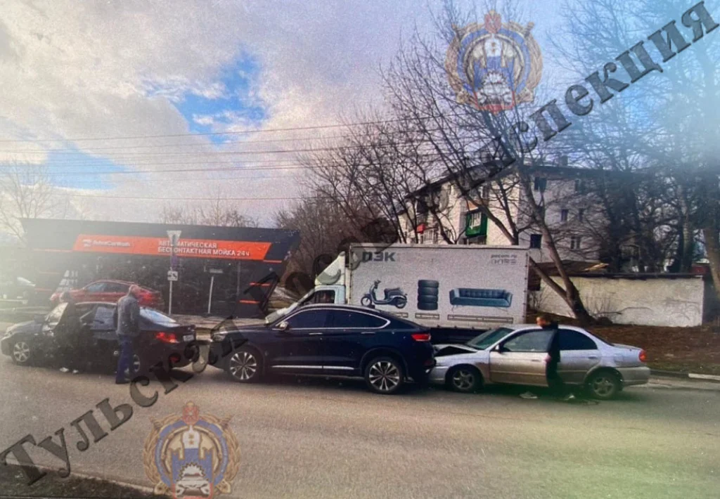 По данным ГИБДД, в 13:45 на Одоевском шоссе в Туле 28-летняя женщина ехала на Geely и врезалась в следовавший впереди Hyundai Solaris, которым управлял 71-летний мужчина. После этого в обе указанные машины врезалась еще и Kia Spectra.