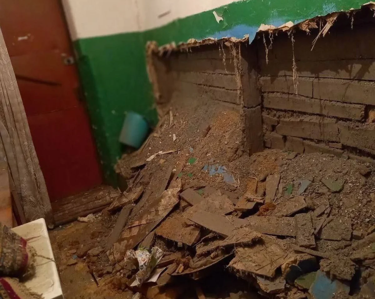 20 января дом обследовала комиссия. Оказалось, что штукатурка на внутренней перегородке стены обрушилась из-за