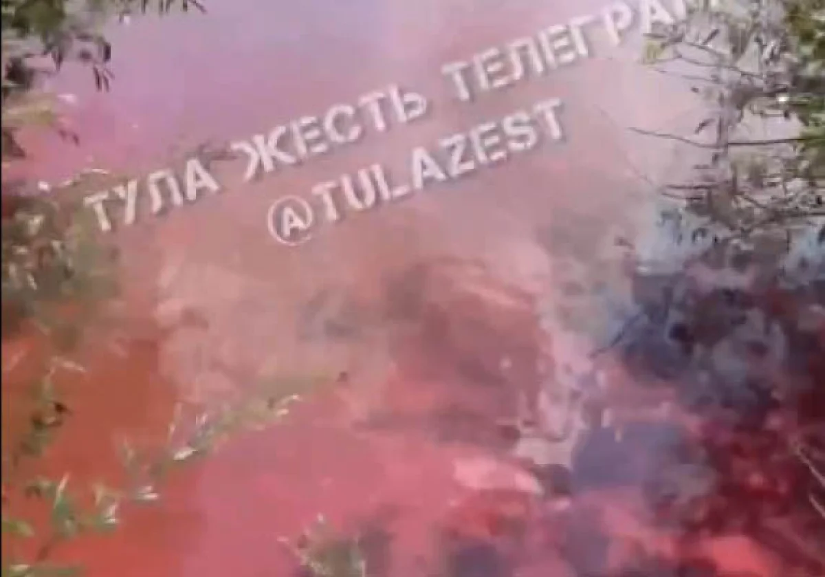 Жители Тульской области опубликовали в соцсетях изображения пруда в поселке Товарковский Богородицкого района, вода в котором приобрела нехарактерный розовый цвет.