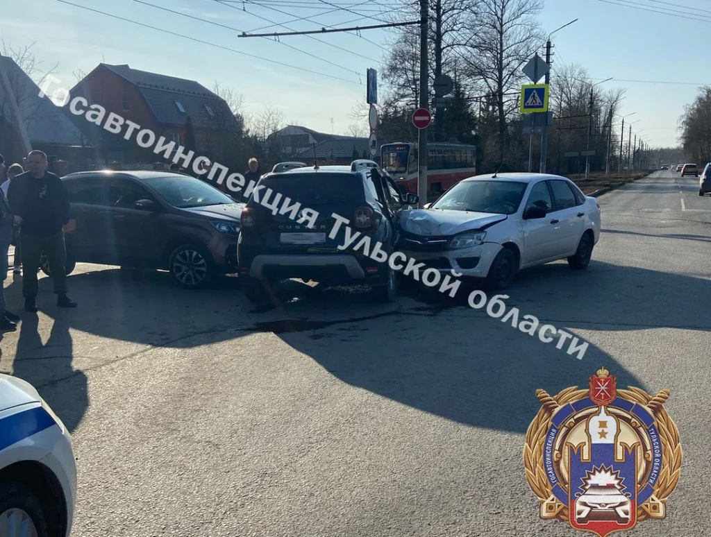 Днем 9 марта в Туле на улице Щегловская засека столкнулись три автомобиля.