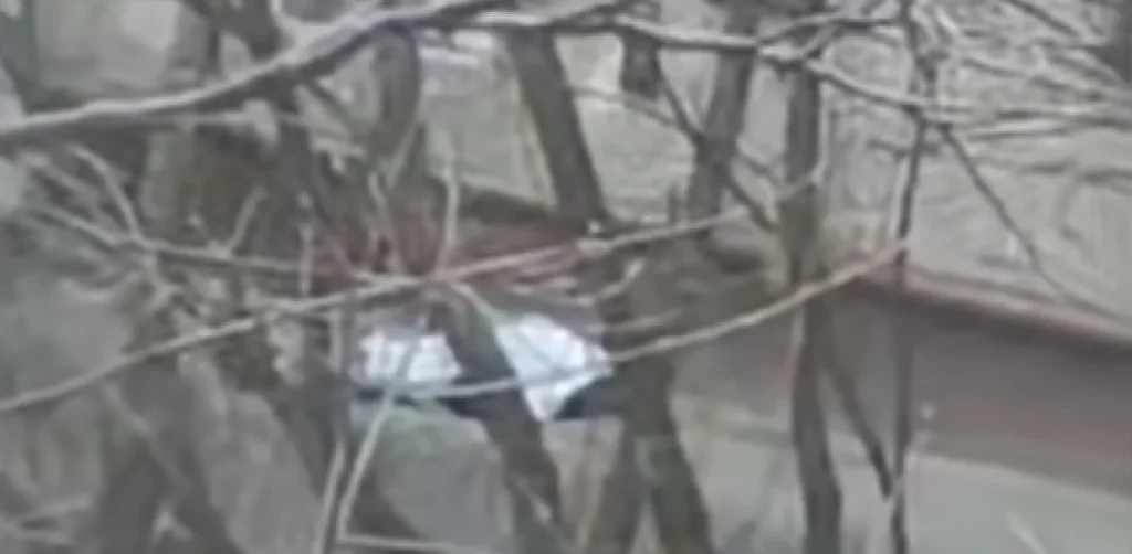 На видеокадрах видно, что у подъезда дома лежит тело, накрытое белой простыней.
