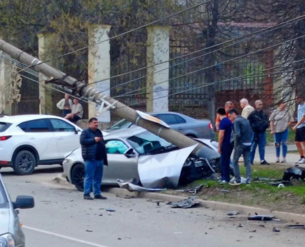 данным Госавтоинспекции, Porsche столкнулся с желтым Kia Rio, после чего улетел в опору ЛЭП.