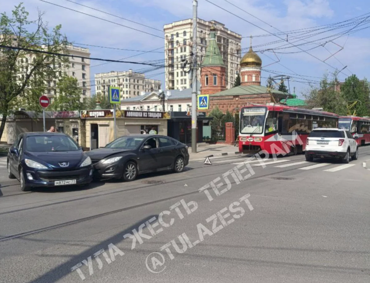 Днем 24 апреля в центре Тулы столкнулись две легковушки. Об этом соцсетях сообщили очевидцы.
