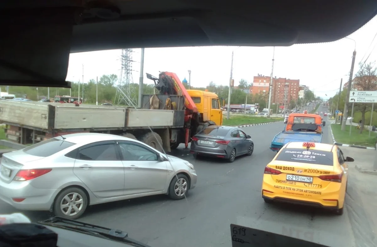В Туле КАМАЗ и Hyundai не поделили дорогу на улице Металлургов и парализовали движение