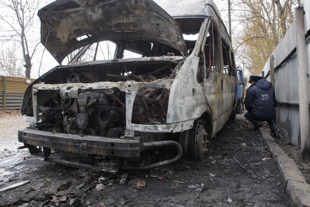 Приехавшие через 6 минут на место пожарные расчеты увидели, что огонь охватил весь микроавтобус и от пламени пострадали два соседних атомобиля "Митцубиси L-200" и "Газель". С помощью воздушно-пенного ствола справиться с возгоранием удалось за 3 минуты.