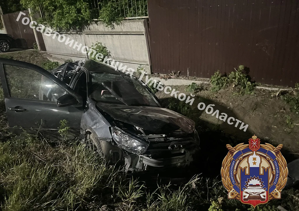 Двое пострадали: LADA улетела в кювет в Ленинском районе Тульской области