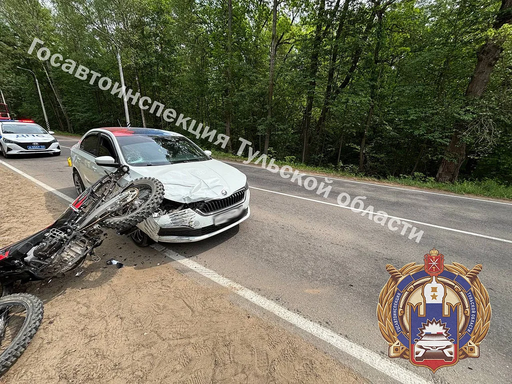 Утром 3 июня на 4-м км трассы Алексин — Егнышовка — Ламоново столкнулись мотоцикл и легковушка.
