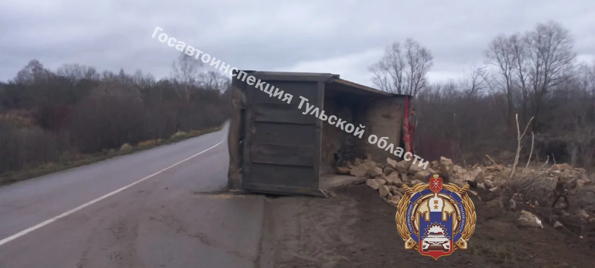 Грузовик перевернулся на трассе в Дубенском районе Тульской области