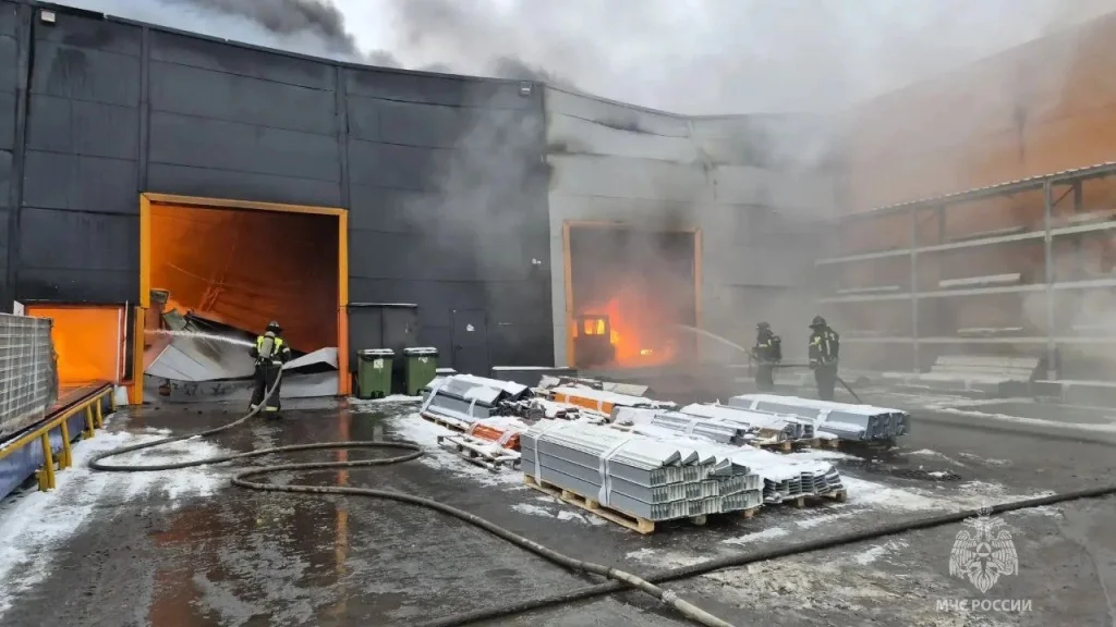 В Щекино потушили крупный пожар на производстве сэндвич-панелей