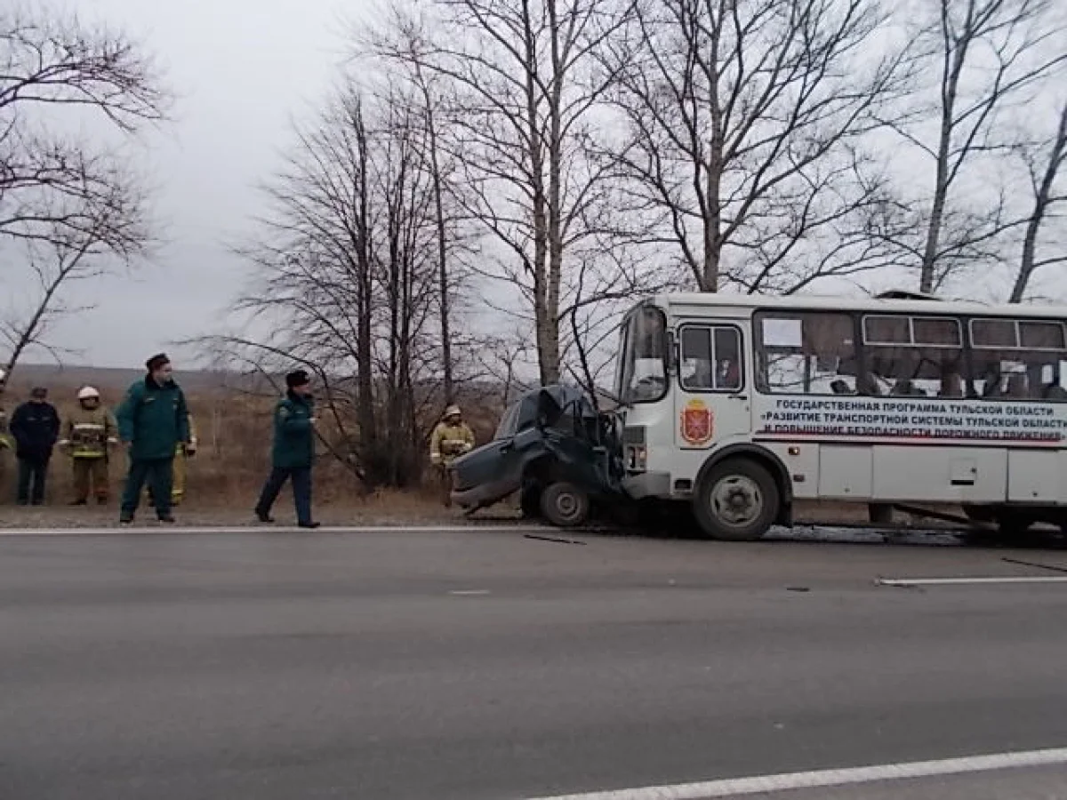 Мы уже писали, что примерно в 9.35 на 15 км автодороги «Липки– Бородинский - Большие Калмыки» столкнулись ВАЗ-2107 и рейсовый автобус ПАЗ, следовавший по маршруту «Липки-Тула».