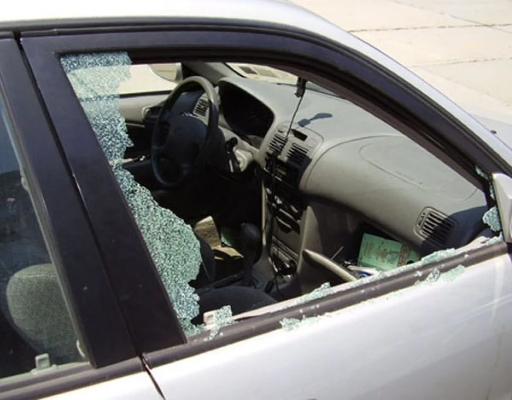 возле дома в центре города автомобиле стекло.