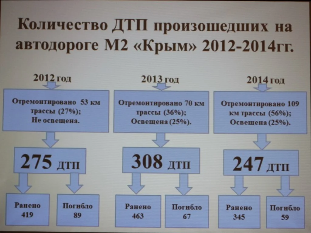 В 2013 году при частичной освещенности трассы произошло 308 ДТП, в которых погибли 67 человек.