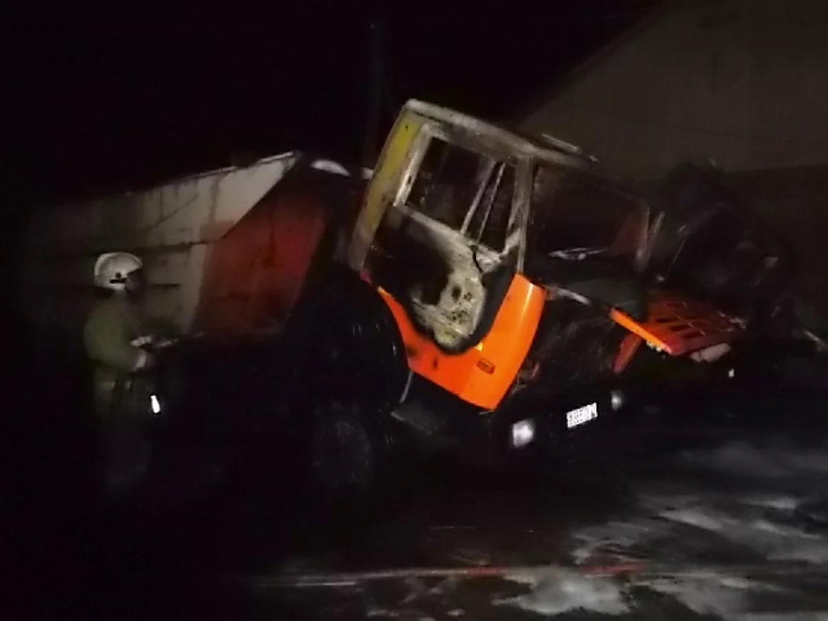 . В 01:37 диспетчер «Единой службы спасения-112» принял сообщение о том, что полыхают два автомобиля "КамАЗ".