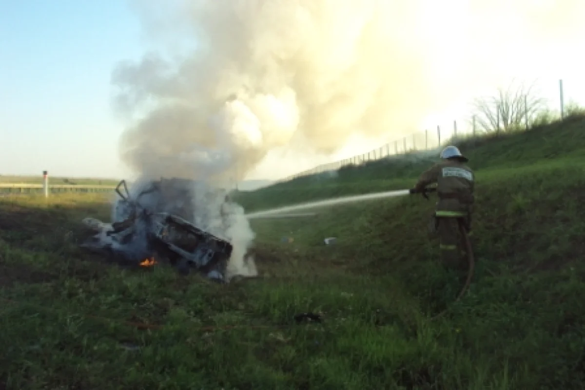 На трассе под Тулой перевернулся и сгорел ВАЗ. Водитель погиб