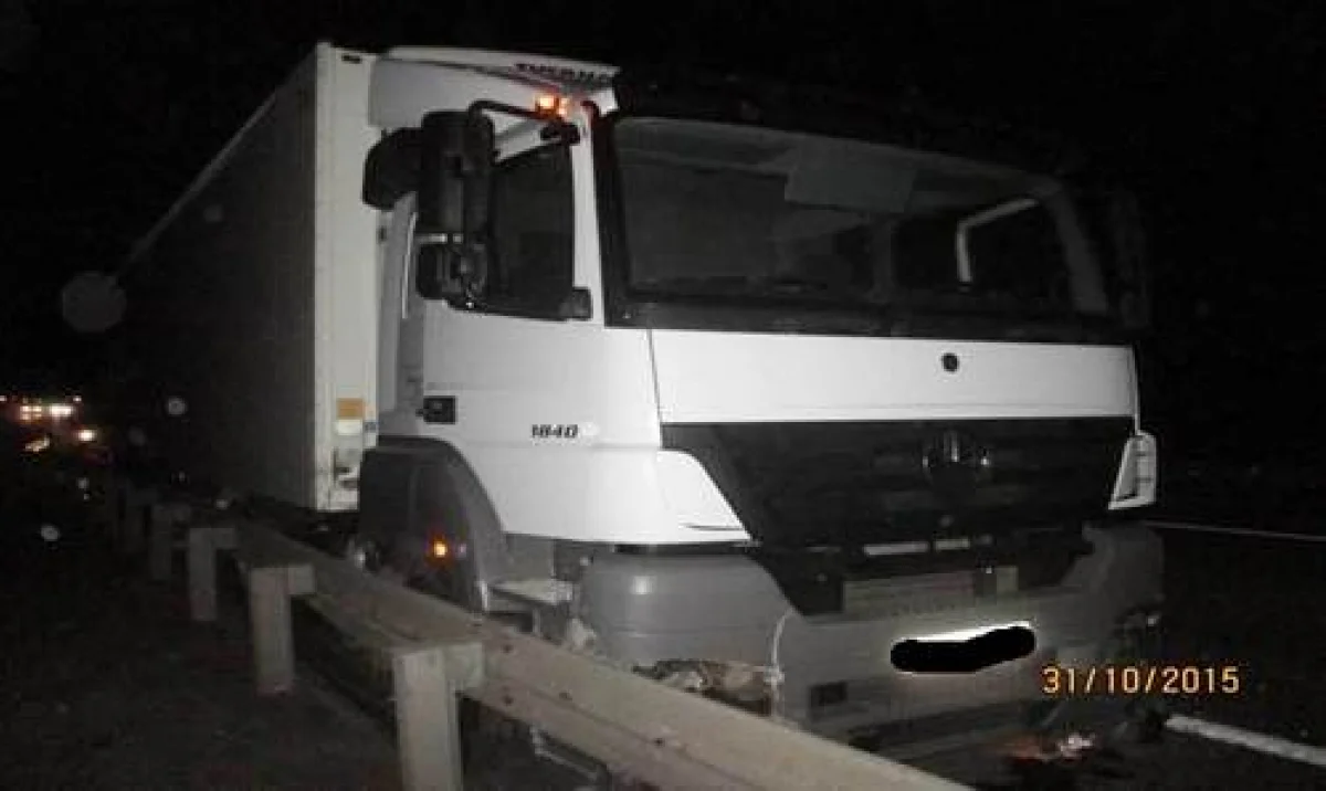 . В 23:21 диспетчер "Единой службы спасения-112" принял сообщение о том, что на 174 км автодороги М-4 "Дон" грузовой автомобиль "Мерседес" наехал на препятствие. Фура врезалась в дорожное ограждение.