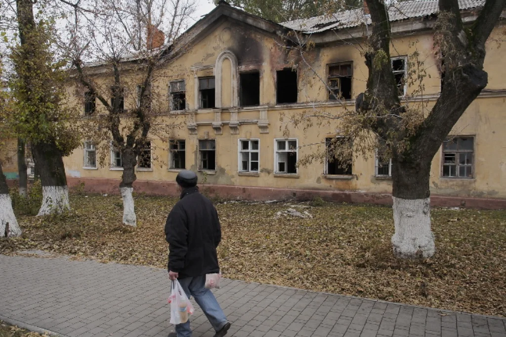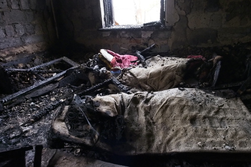 двери не заколочены и остаются нараспашку. Стены некоторых домов обуглились при пожарах.