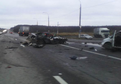 Страшная авария под Тулой: столкнулись "Мерседес", "Сааб" и "Валдай"