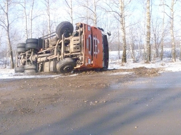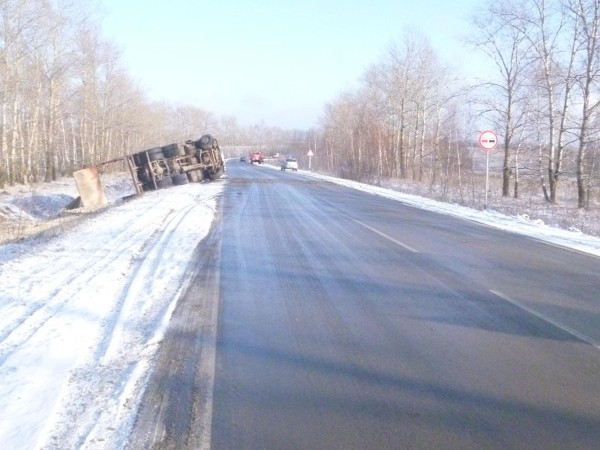 На скользкой дороге под Тулой перевернулся "Камаз"
