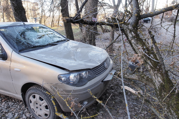 Сегодня днем под раздачу попал припаркованный во дворе Fiat по ул. Волоховской, 12-а. Часть огромного дерева упала на машину, но, к счастью, обошлось без жертв. Упавший ствол серьезно повредил автомобиль и оборвал провода.