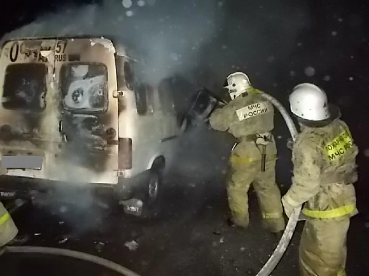 Вчера вечером на 297-ом километре трассы М-4 "Дон" на территории Тульской области загорелся микроавтобус.
